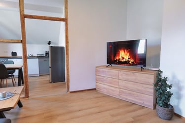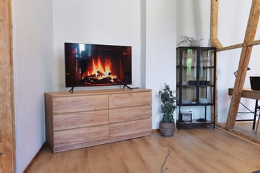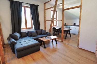 Dieses großzügig geschnittene Loft verfügt über ein Wohn-Schlafbereich mit einem Doppelbett (180x200) und einer Schlafcouch für jeweils 2 Personen.