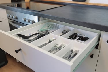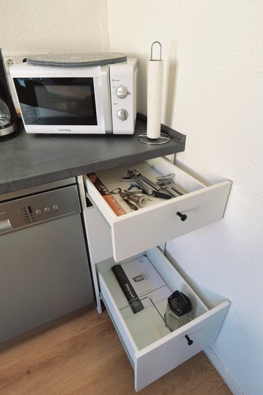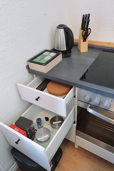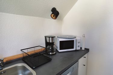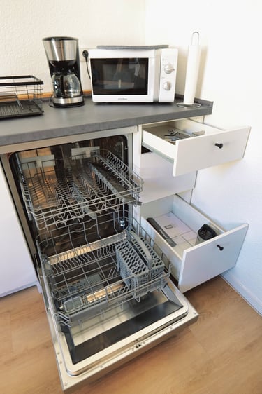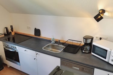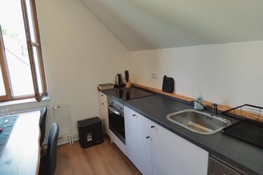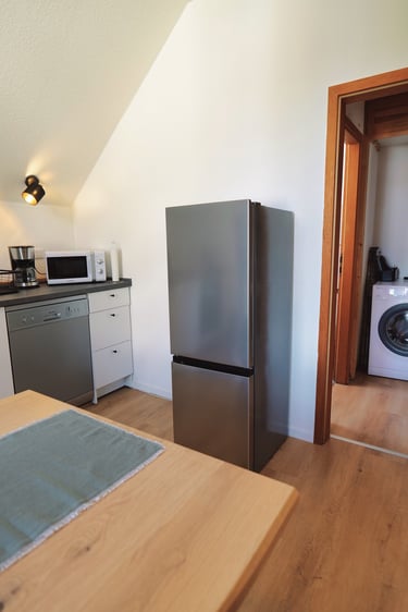 Die Wohn-Küche ist nicht nur hervorragend ausgestattet, ein großer Esstisch bietet Platz für bis zu 4 Personen.